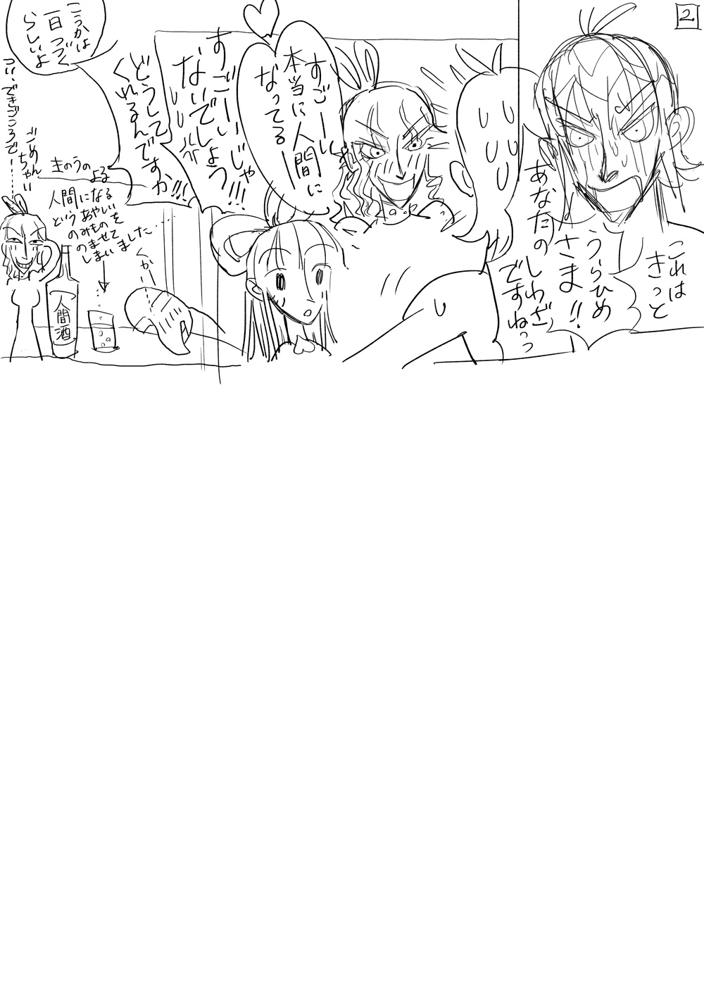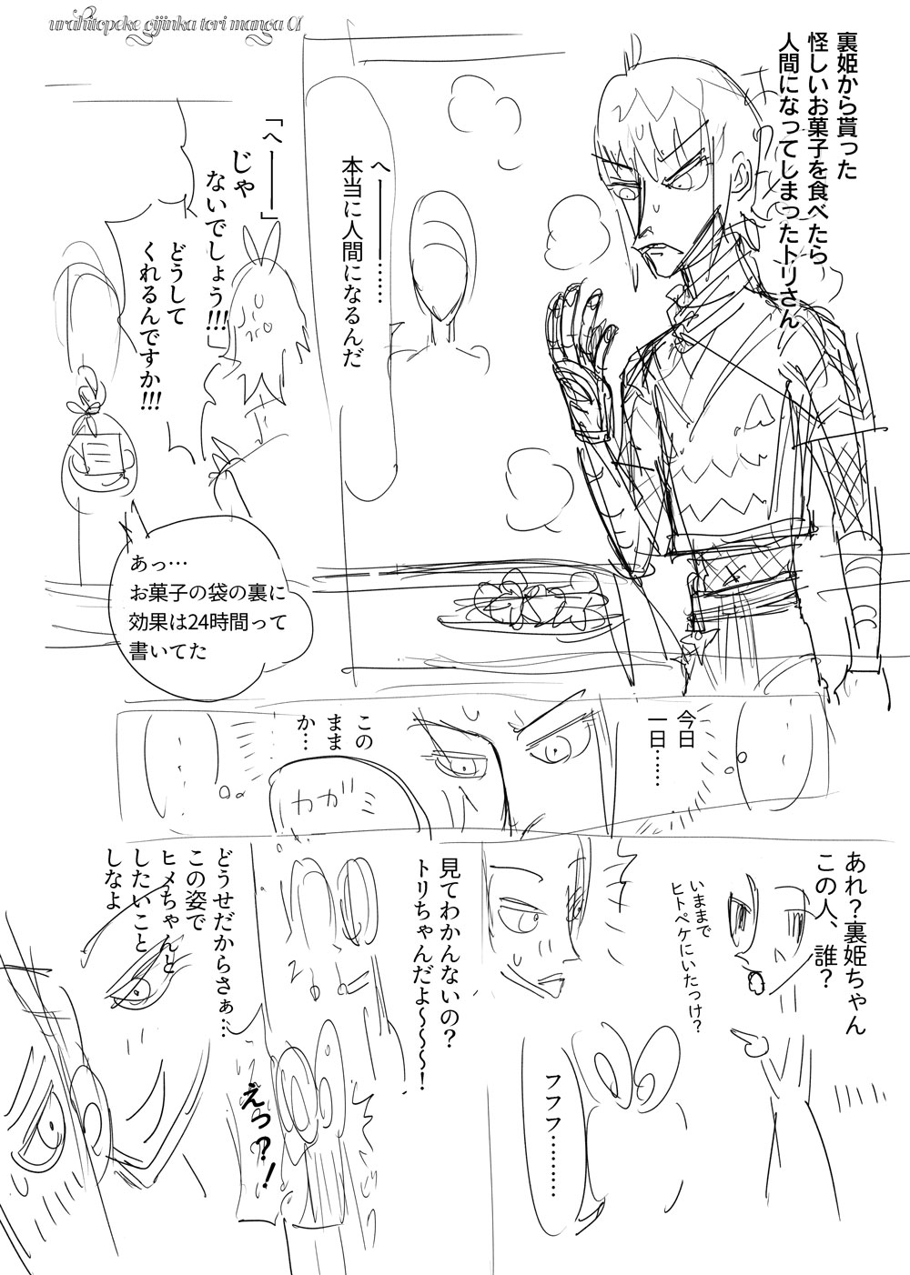 なぜ人間の姿になったのか。導入を考えていたときのらくがき。おまけらくがき付き。