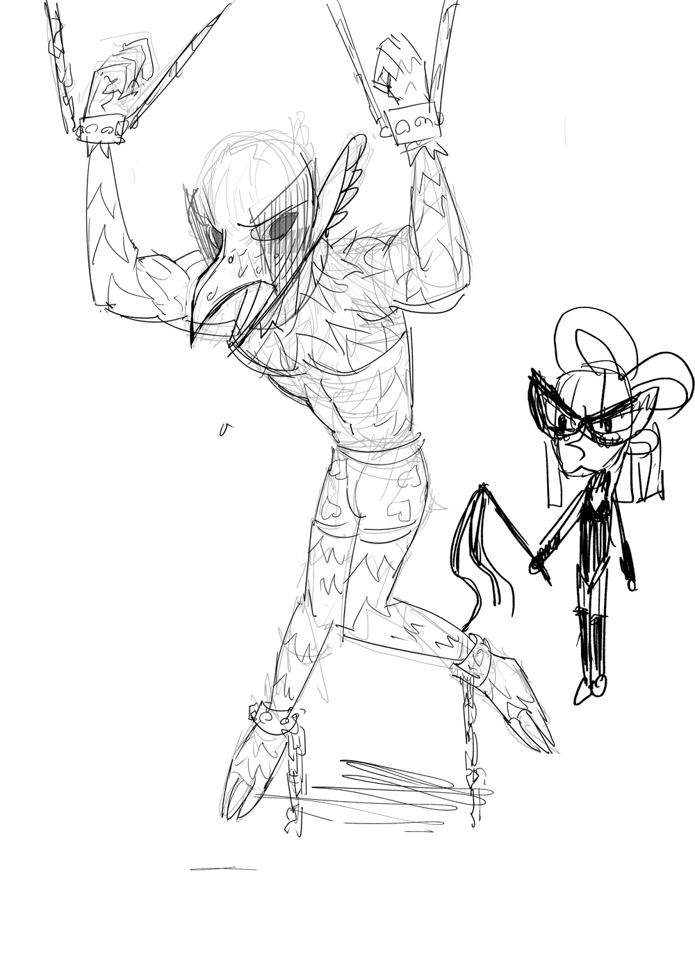 ドS裏姫と姫にいじめられるM男擬人化トリ(と獣トリ)あとで色塗りたい。